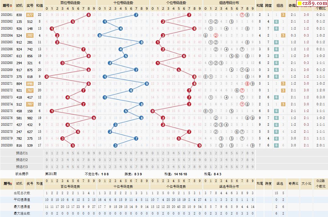 281期体彩排列3近期历史号码图表
