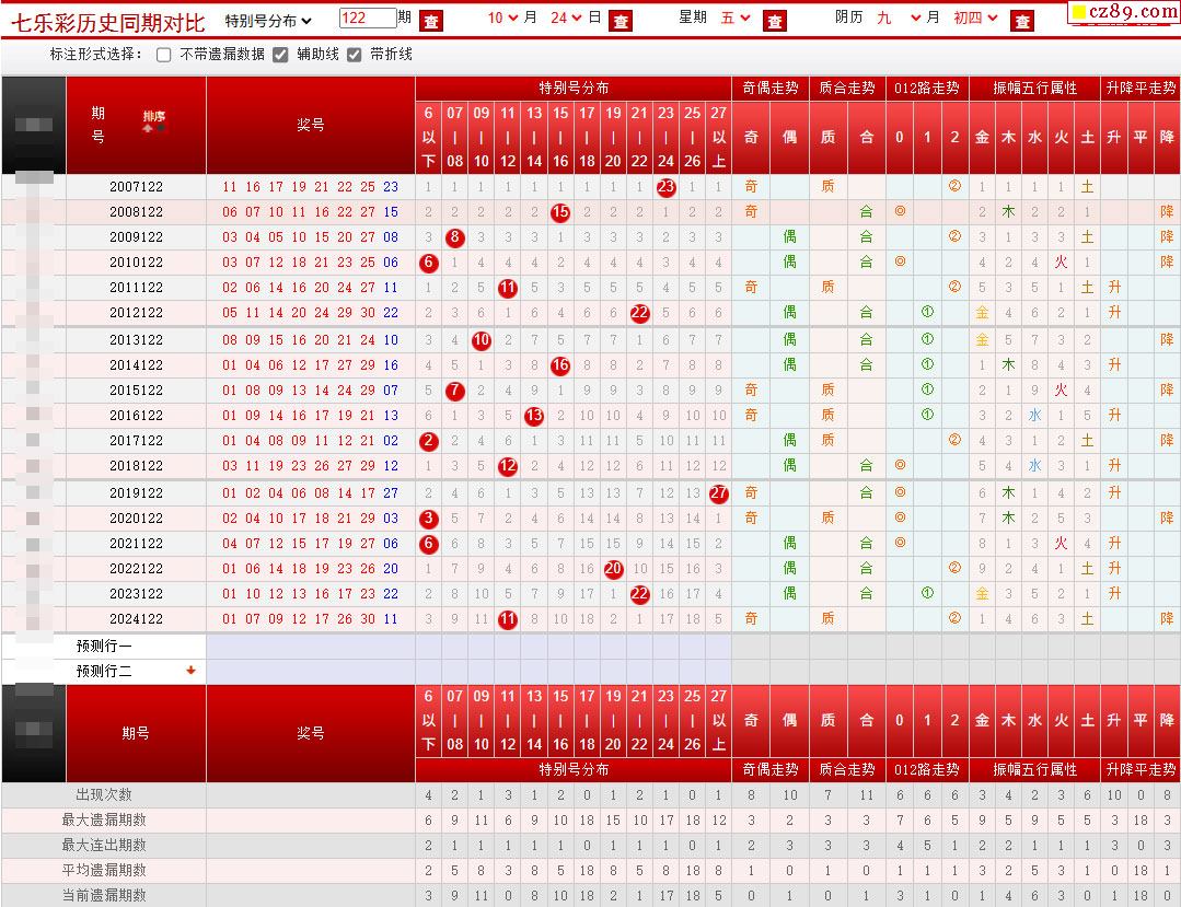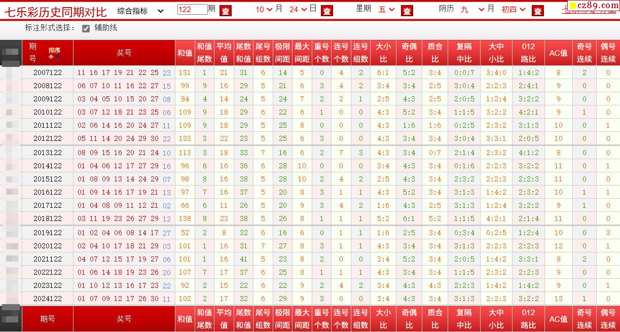 122期七乐彩历史同期对比图